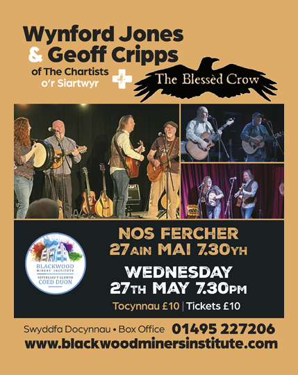 Wynford Jones and Geoff Cripps’ towering presence on the folk circuit over four decades has been immense. Both founder members of much-loved 80s folk-rock pioneers The Chartists, Wynford and Geoff retain all their energy and verve. Wynford’s songs articulate, like few others can, the radical Welsh working-class experience…and the poignant memories of growing up in the Valleys.